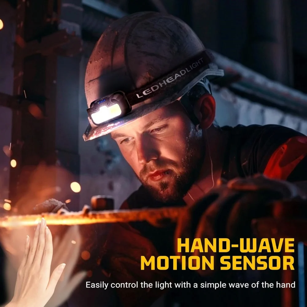 14 Modes Motion Sensor Rechargeable Headlight Waterproof Forehead Flashlight Fishing Light Front Head Lamp Led Camping Headlamp